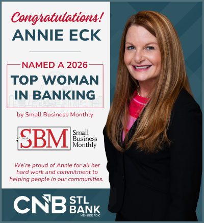 We are proud to announce that Annie Eck has been recognized as one of the Top Women in Banking 2026 by St. Louis Small Business Monthly! This honor celebrates exceptional women who are making a meaningful impact in their organizations and communities.